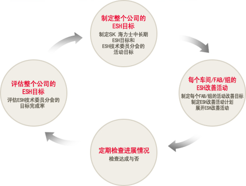 SK海力士分别制定了环境·安全·卫生保健领域的中、长期目标,并将这一目标贯彻到SK海力士ESH Roadmap活动中。